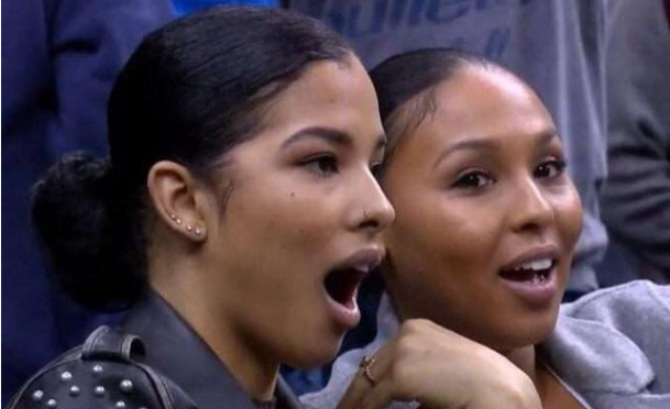 现场两位女球迷被惊得目瞪口呆,新秀一些的这个就是比尔的女友